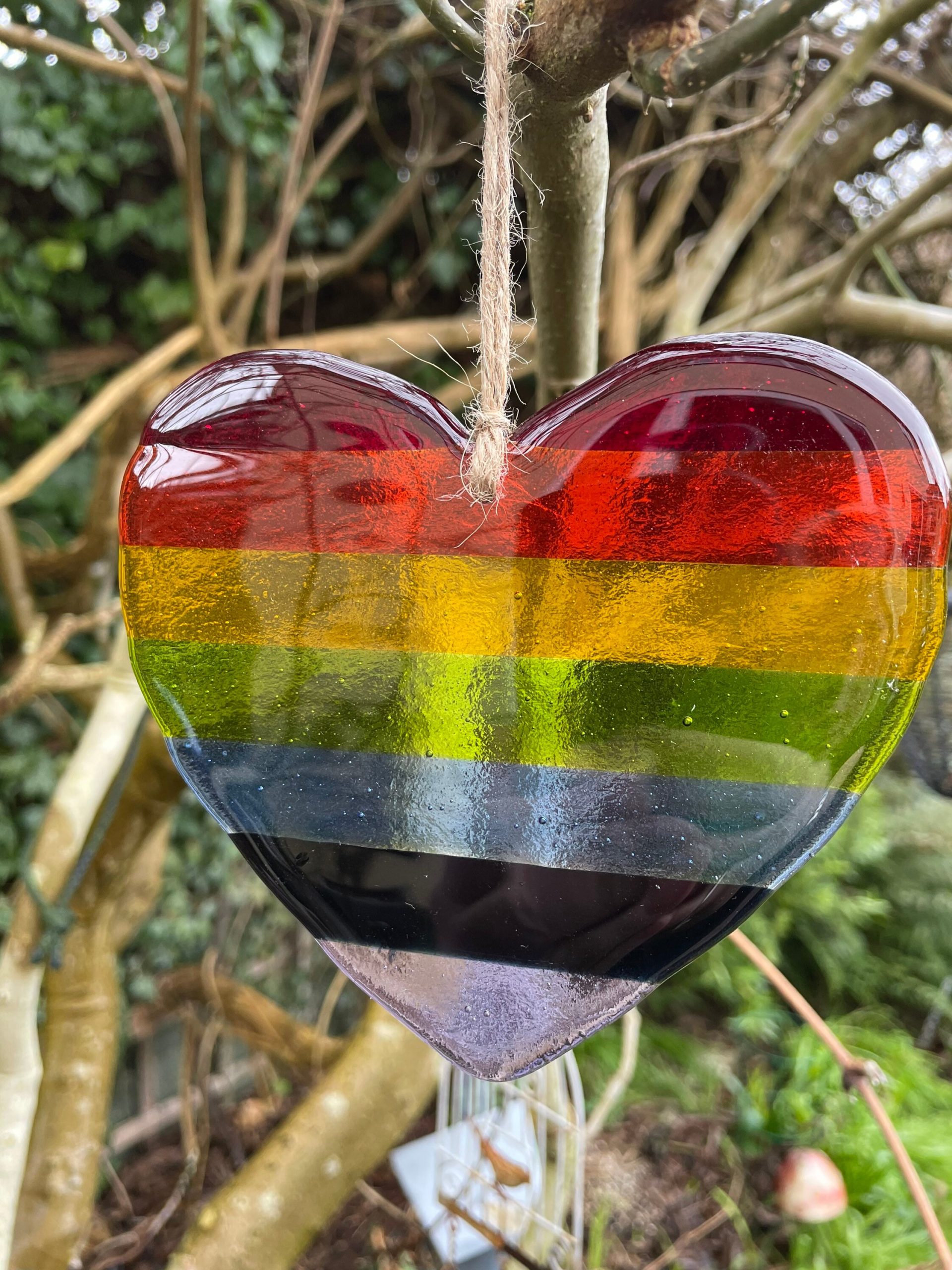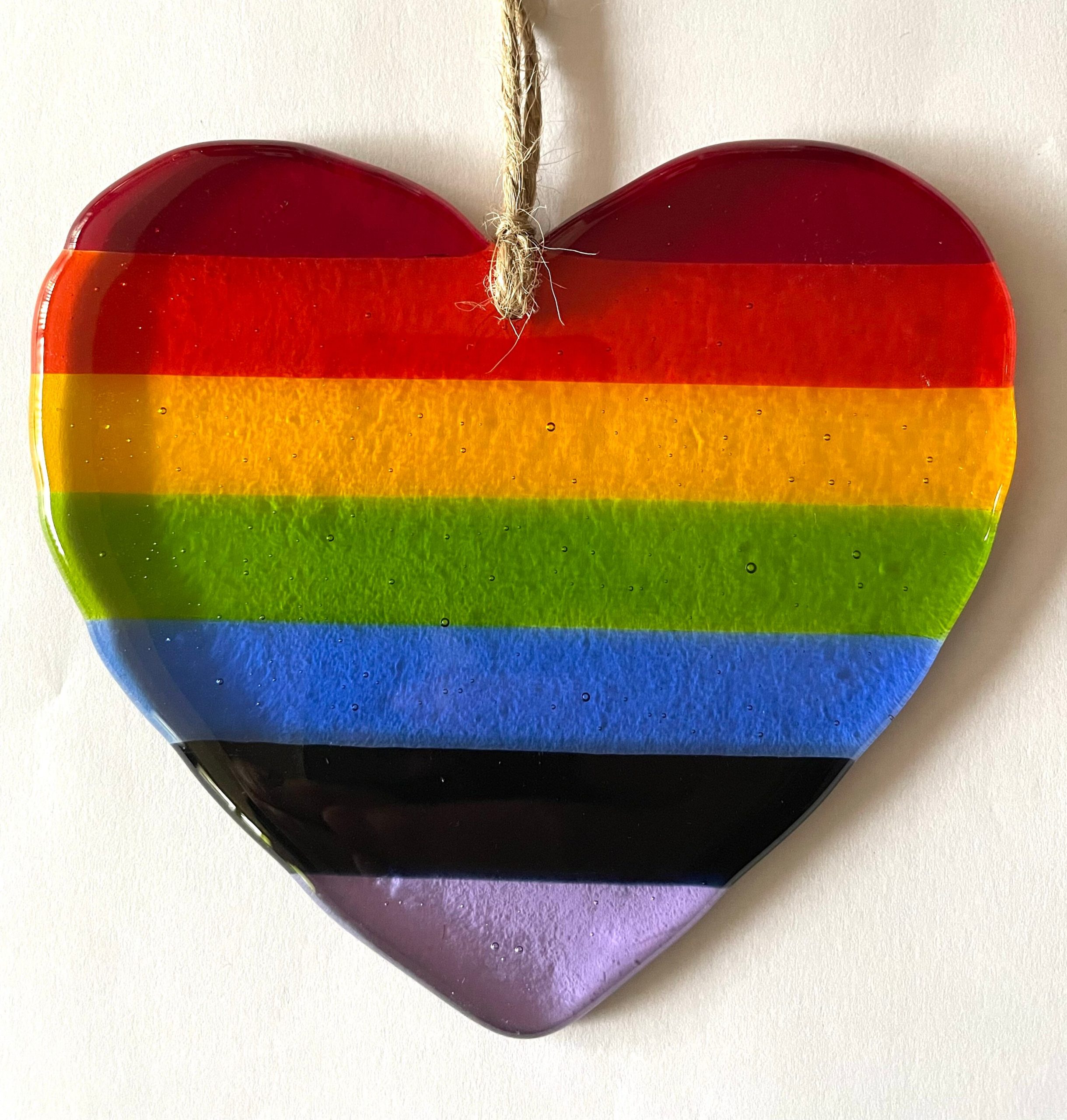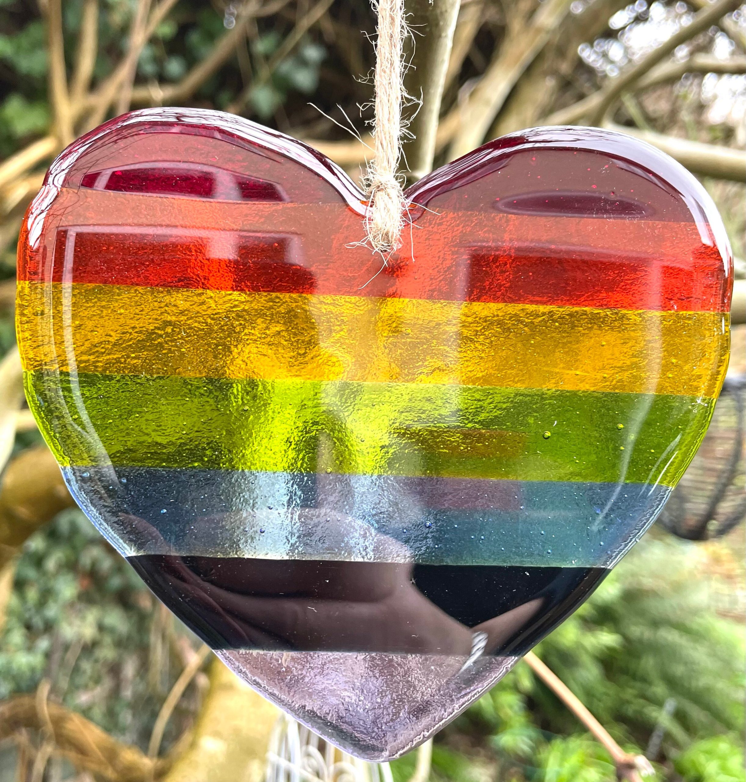 A lovely piece of fused glass in the shape of a heart.