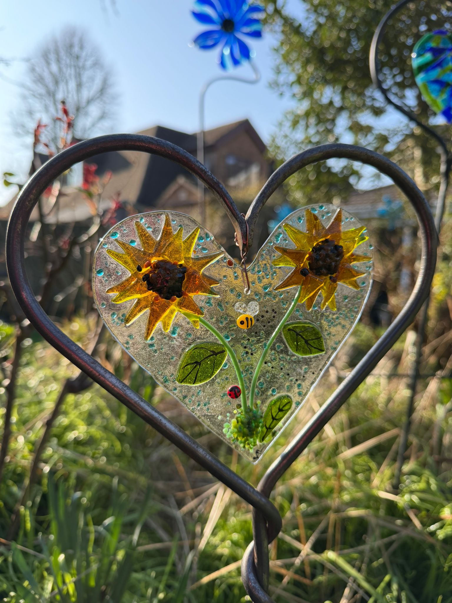 Fused Glass Heart (14cm) with Iron stand @Warwickshire Artisans – £85
